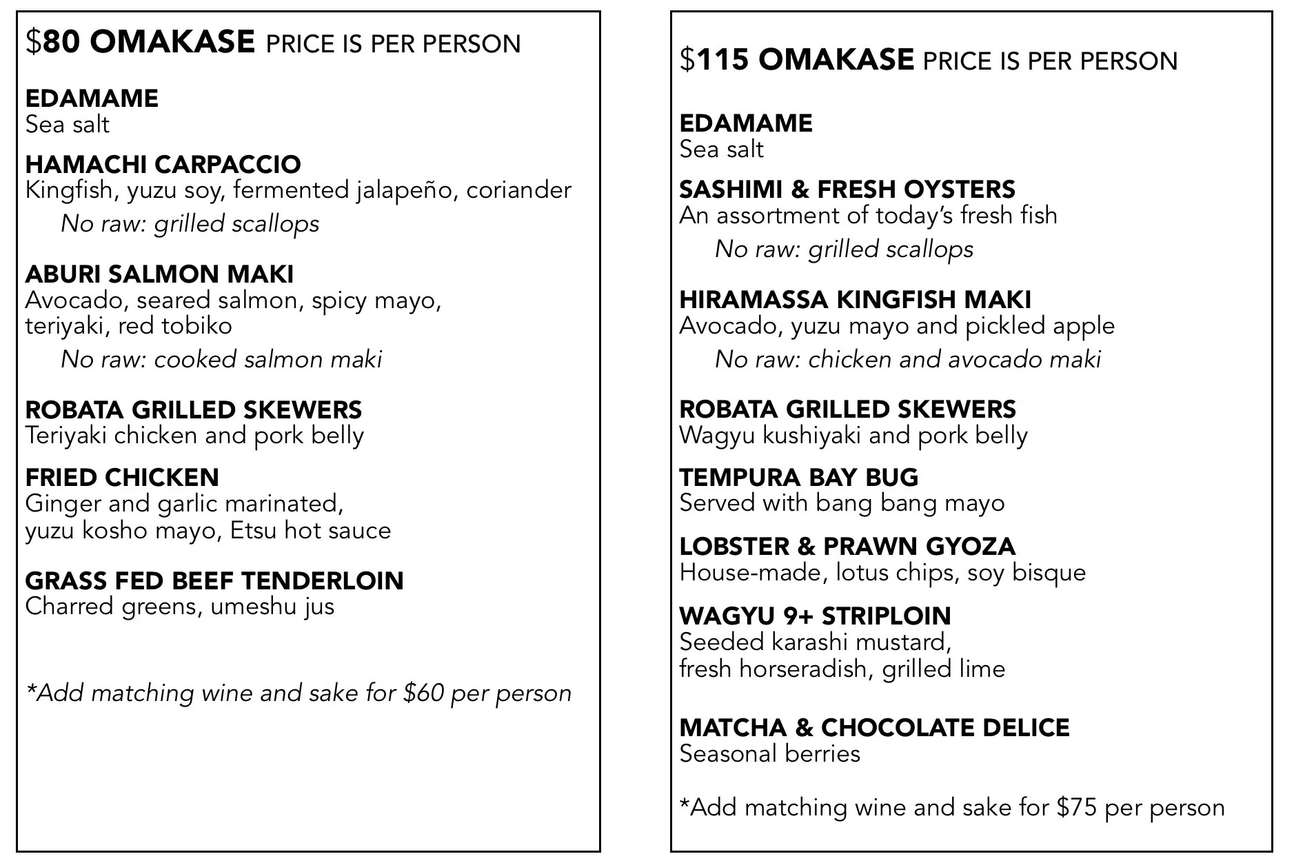 Groups of 8 adults or more will be required to choose from either of our Omakase menu options below. This also applies if you have extra guests arrive on the night which increases your booking to 8 or more.